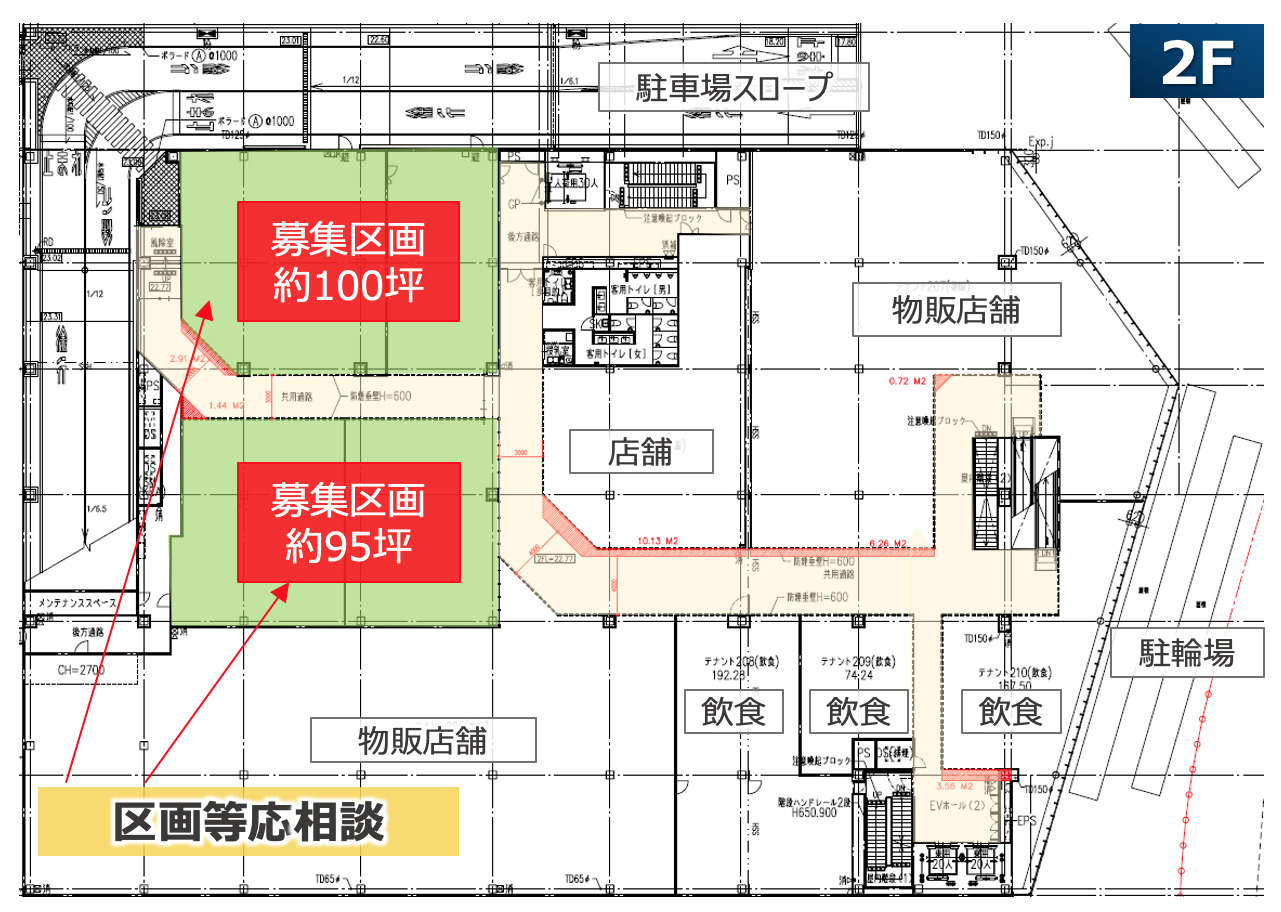 面積 2階:約200坪内で区画等応相談